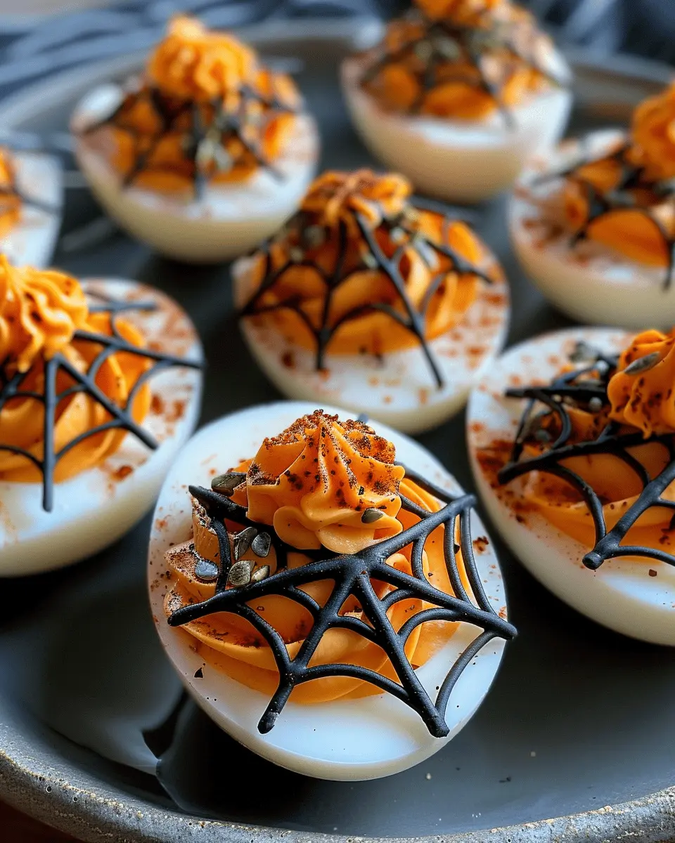 Appealing Presentation: The aesthetics of spooky spiderweb deviled eggs mean you can have fun with the presentation. Using a squeeze bottle to create web-like designs or spooky faces out of condiments can turn your dish into an edible work of art.