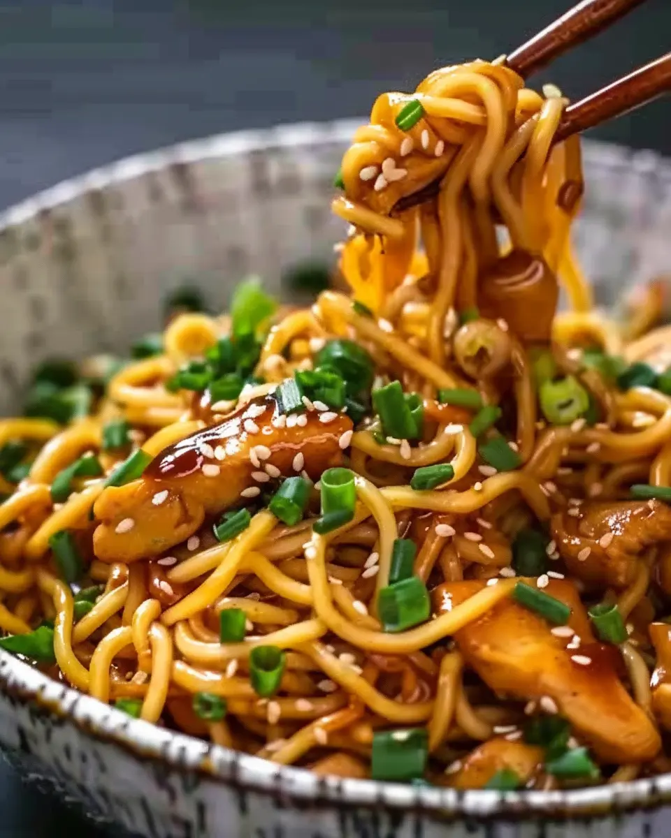 PrintSticky Garlic Chicken Noodles: Easy Recipe for Homemade Delight