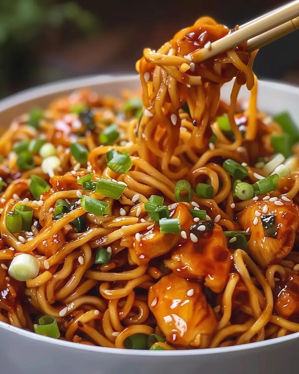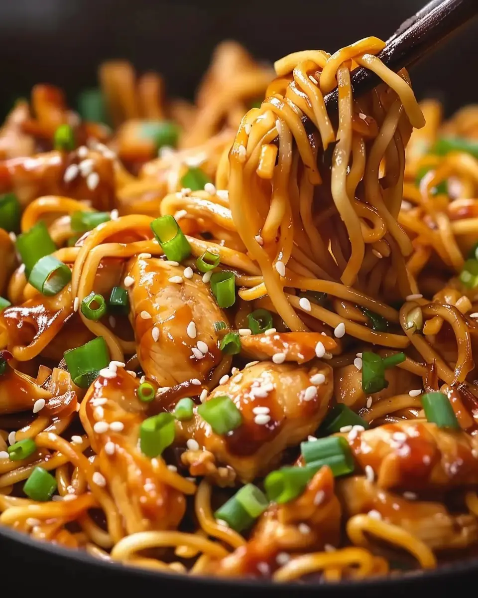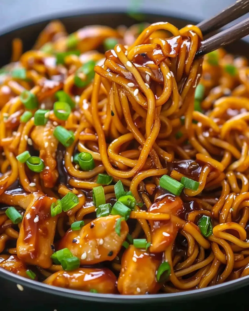 To take your Sticky Garlic Chicken Noodles to the next level, garnish with chopped green onions and a sprinkle of sesame seeds. This adds not only a pop of color but also a delightful crunch.
