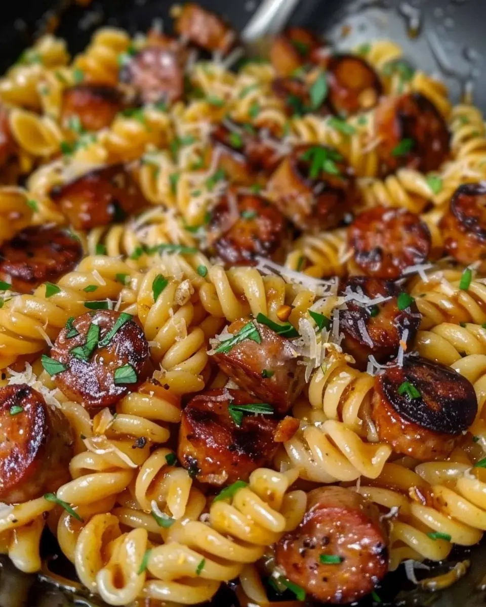 Home » Recipes » Sticky Honey Garlic Sausage Pasta Skillet: A Simple Delight for Home Cooks