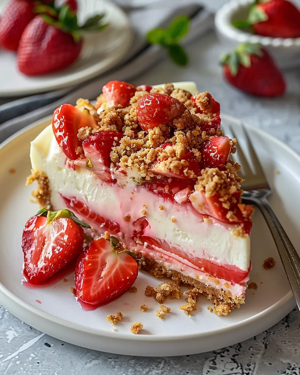 For those following a plant-based lifestyle, fear not! A vegan strawberry crumble cheesecake version can be just as delicious. Use a blend of soaked cashews and coconut cream as a base for your cheesecake filling. Add maple syrup or agave nectar for sweetness, along with fresh strawberries for that signature burst of flavor. Instead of traditional butter for the crumble, opt for coconut oil to maintain that buttery consistency while keeping it dairy-free. This variation means everyone can enjoy a slice of heaven, no matter their dietary choices!