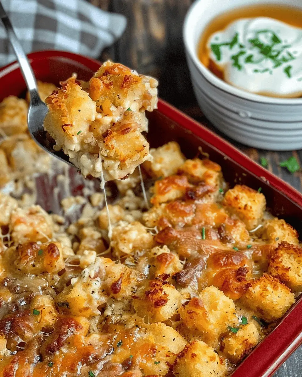 Moreover, this recipe caters to everyone’s palate, making it an ideal choice for gathering with friends or family. Whether you’re hosting a game night or a cozy dinner, Tater Tot Casserole is sure to satisfy. It’s also a great way to sneak in some veggies—consider adding in chopped bell peppers or spinach for that extra nutrition.